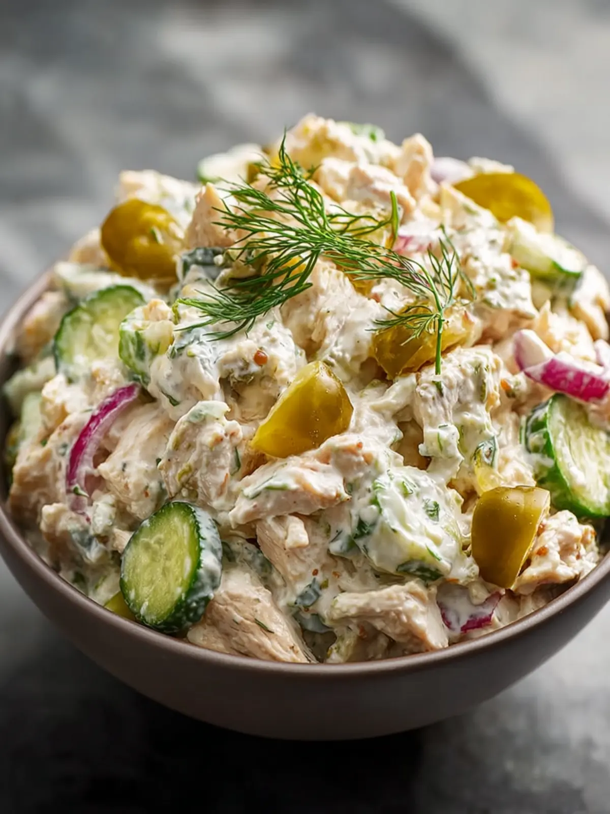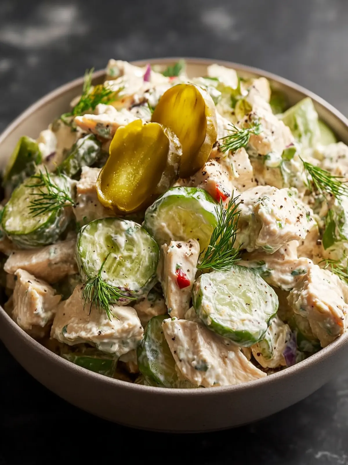 Creamy Texture: Picture biting into rich, tender chicken, blended perfectly with creamy dressing. The creaminess pairs beautifully with the surprising crunch of pickles, adding layers to every spoonful.