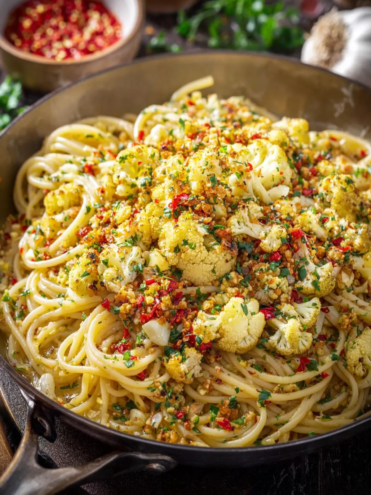 Pasta: I choose spaghetti for its flexibility and ease of preparation. However, this easy cauliflower pasta recipe is adaptable, so feel free to swap in your favorite pasta shape—whether it’s penne, farfalle, or any gluten-free option you enjoy.