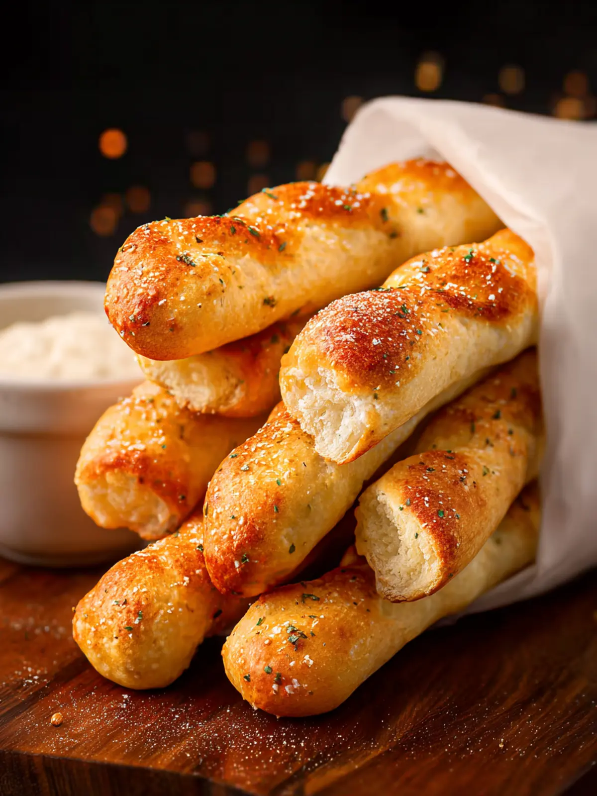 Delicious garlic breadsticks that are soft and buttery, perfect for any meal.