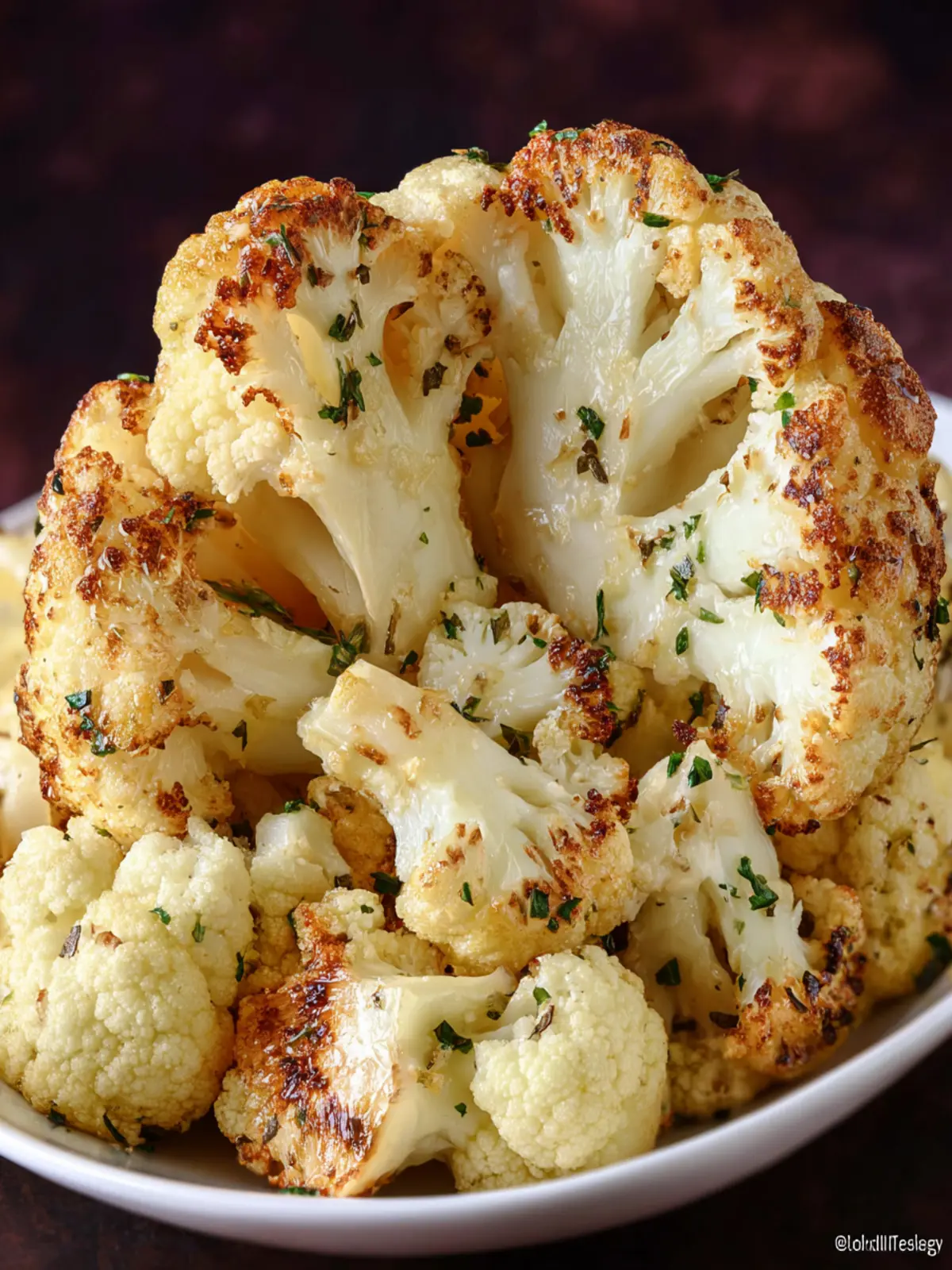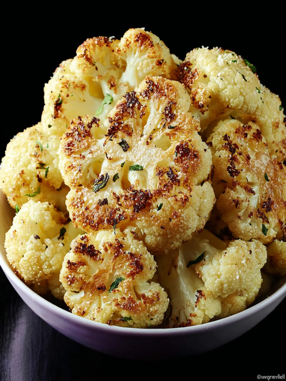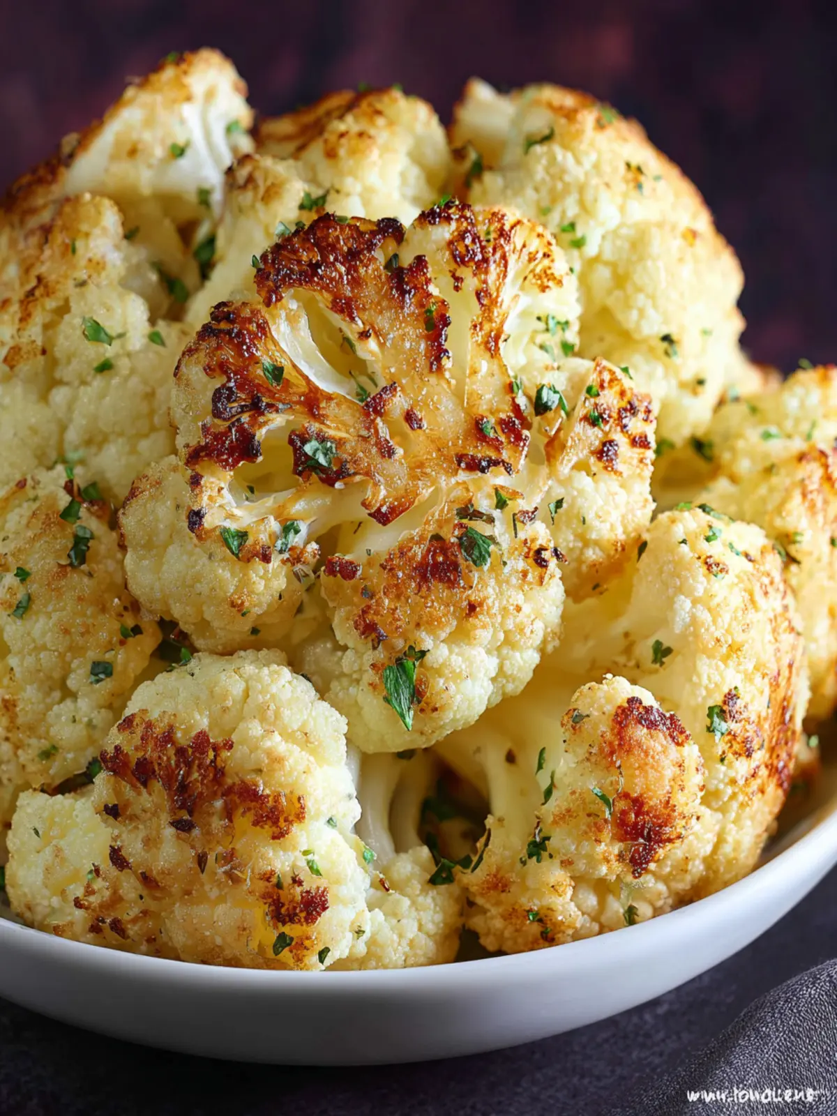 A simple and delicious roasted cauliflower dish seasoned with olive oil, garlic, and Parmesan cheese.